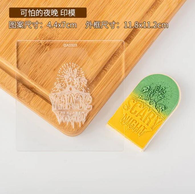 Acrylic outboss stamp with cutter.