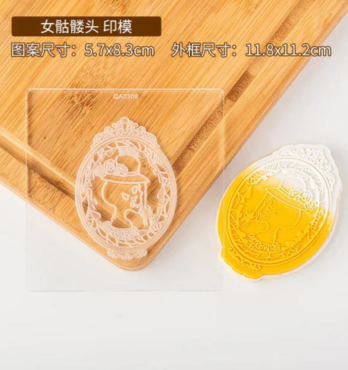 Acrylic outboss stamp with cutter.
